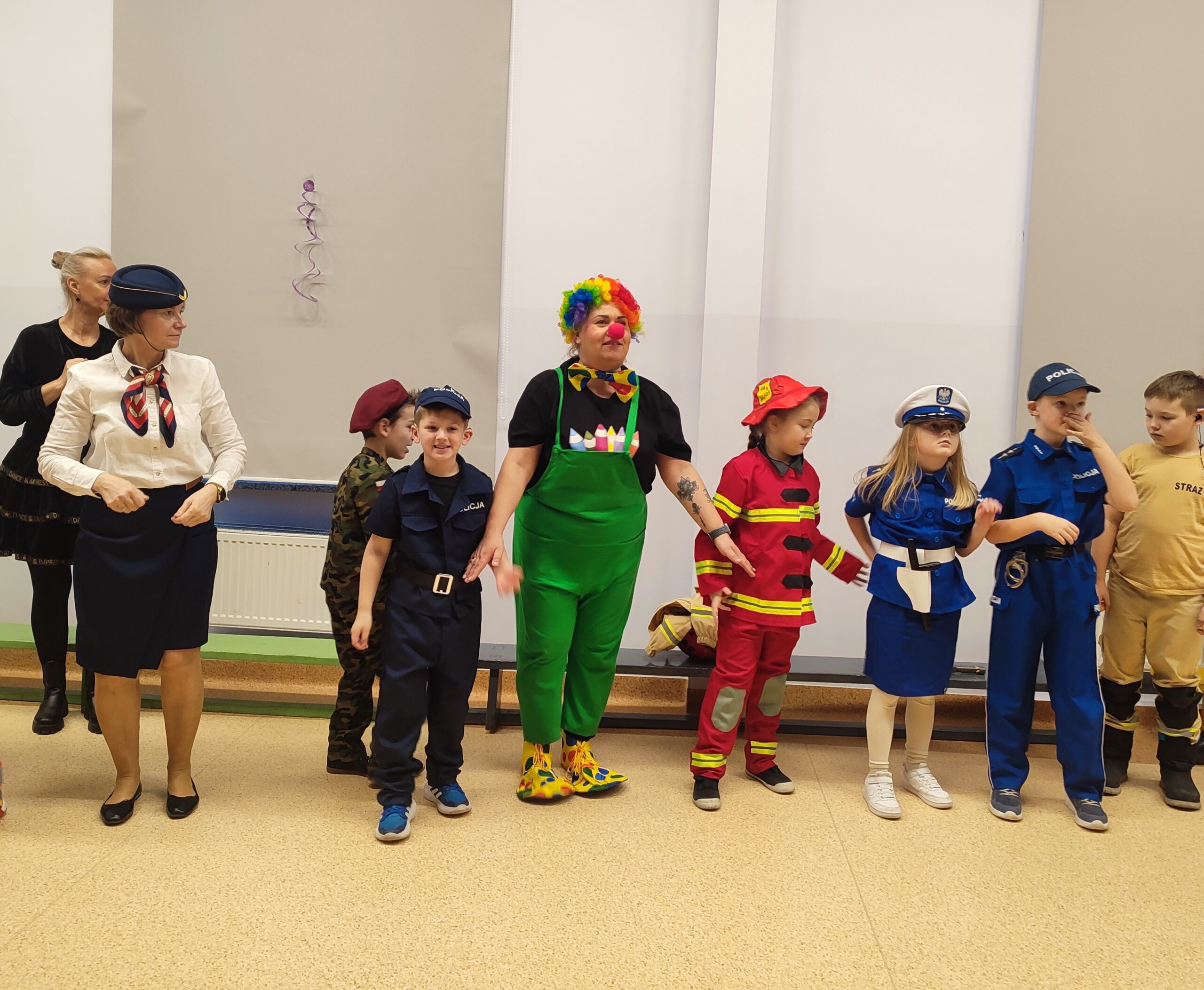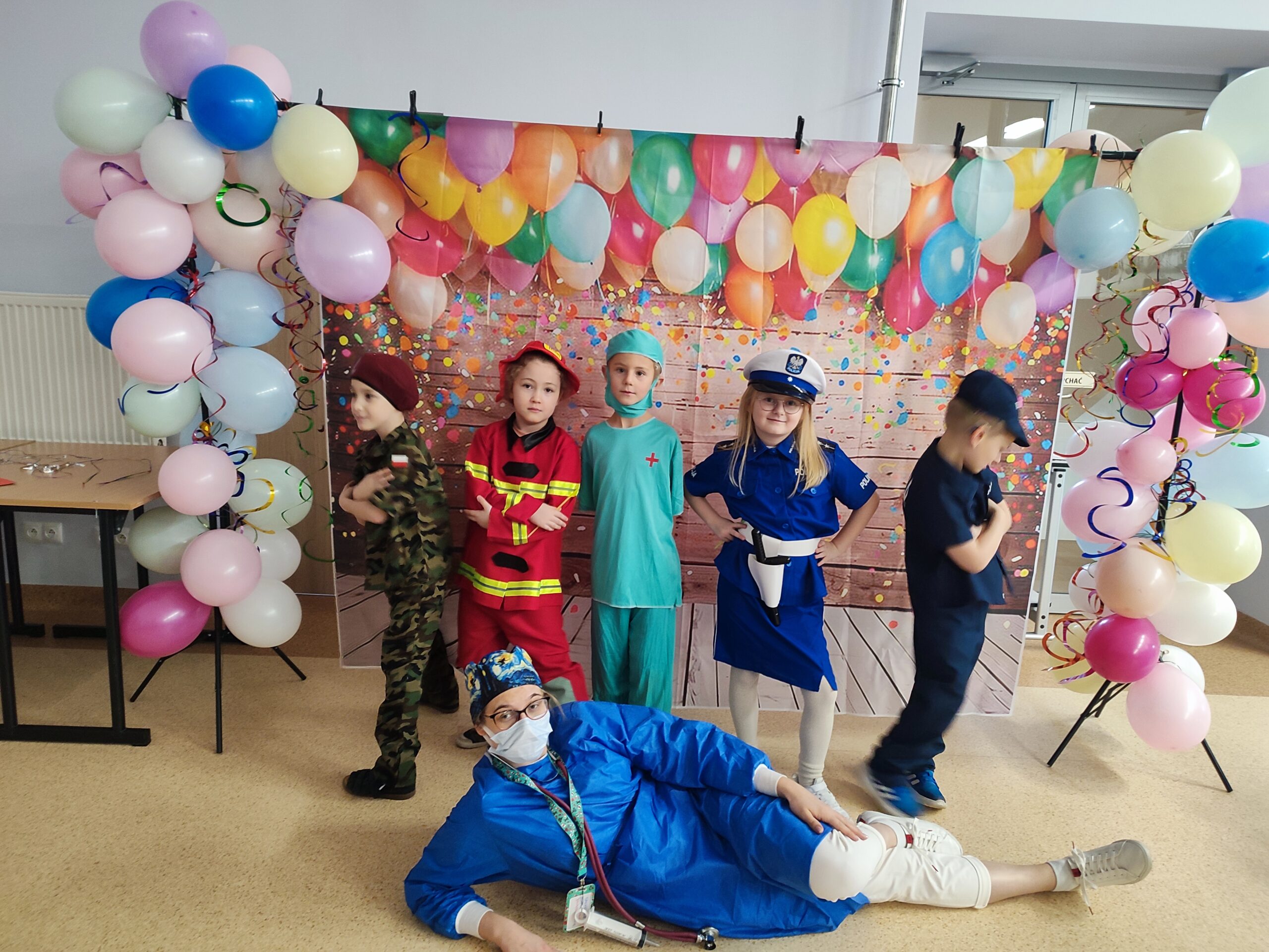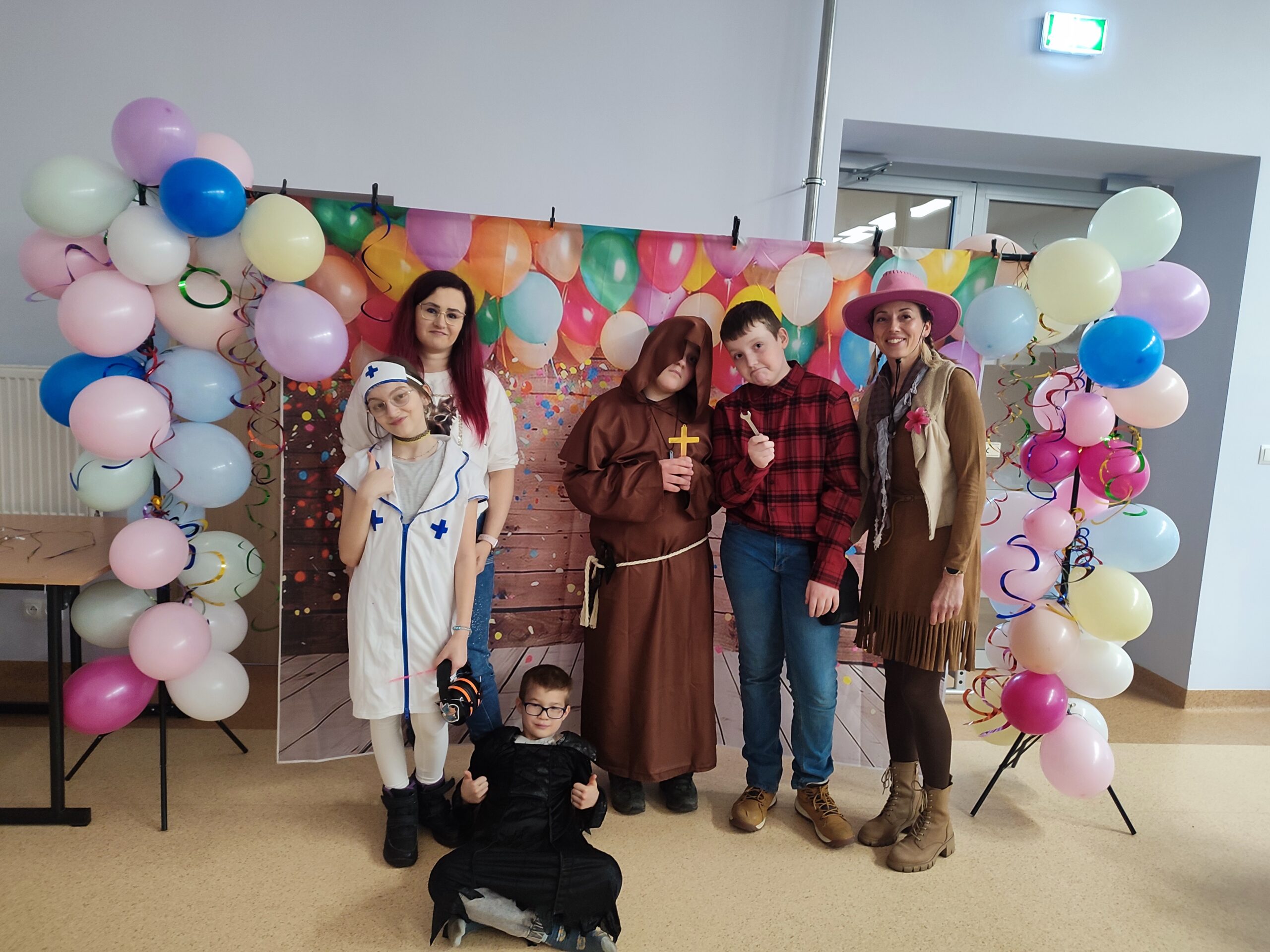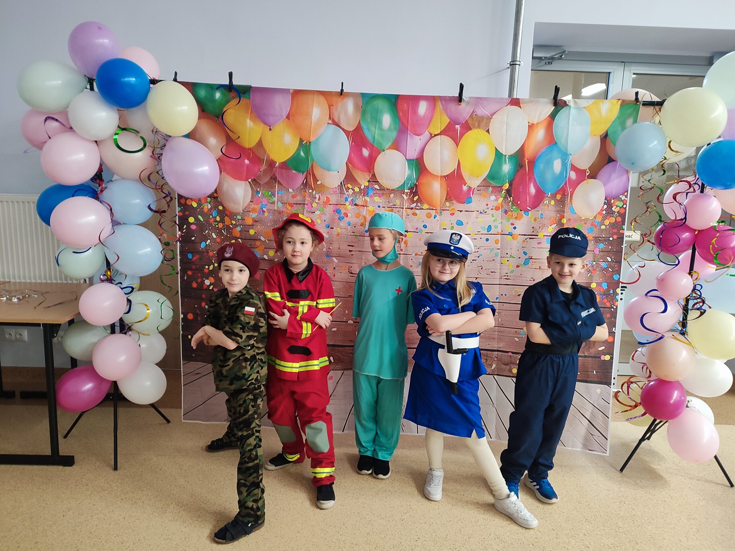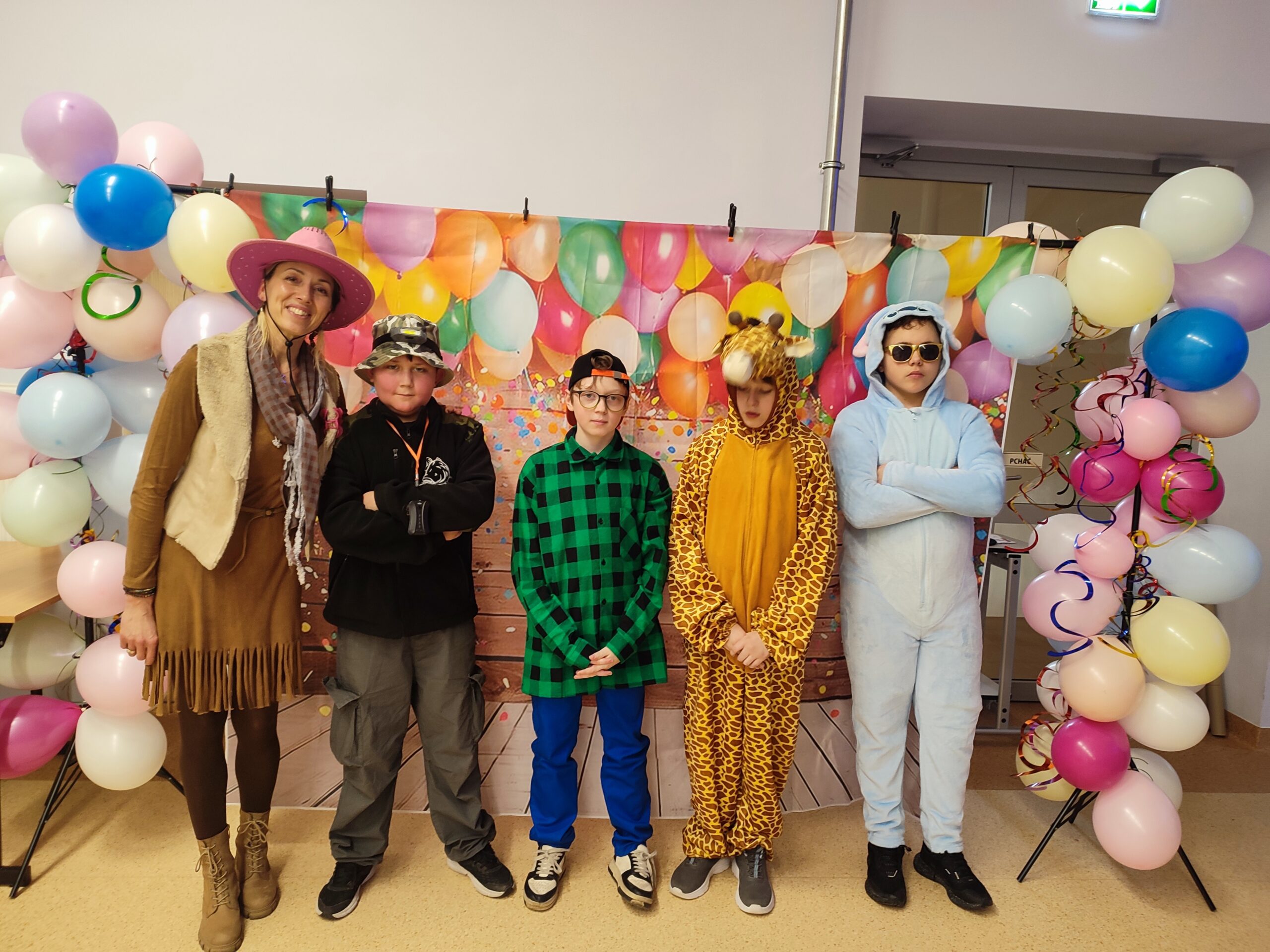Karnawał to czas radości i wspólnej zabawy – a tegoroczny Bal karnawałowy w naszej szkole na długo pozostanie w pamięci uczniów. Aula zamieniła się w kolorową salę balową pełną balonów, serpentyn i błyszczących dekoracji, tworząc wyjątkową atmosferę. Bal uczniów z klas 1–4 odbył się pod hasłem różnych zawodów. Uczniowie zachwycali pomysłowymi strojami, na parkiecie pojawili się m.in. policjanci, strażacy i pielęgniarki. Do zabawy dołączyły także wychowawczynie w kreatywnych przebraniach. Nie zabrakło tańców, konkursów i tradycyjnego tanecznego pociągu. Na parkiecie bawili się także uczniowie klas 5–8 tańcząc do najpopularniejszych przebojów i biorąc udział w integracyjnych zabawach. Bal był doskonałą okazją do wspólnej radości i integracji całej społeczności szkolnej.
