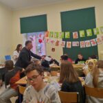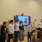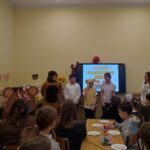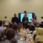 Na początku spotkania uczniowie z klasy 5a i 4a zaprezentowali wiersz o misiu w języku migowym. Był to piękny i wzruszający akcent, który wprowadził wszystkich w tematykę zajęć oraz zachęcił do wspólnej nauki. Następnie wszyscy uczestnicy uczyli się podstaw języka migowego – migali fragmenty wiersza, a także swoje imiona, co okazało się zarówno edukacyjne, jak i bardzo angażujące. Dużo emocji wzbudził również „Quiz o misiach”, podczas którego uczniowie mogli sprawdzić swoją wiedzę na temat ulubionych bohaterów bajek, znanych misiowych postaci i ciekawostek związanych z tym sympatycznym świętem.