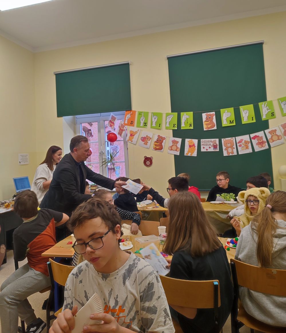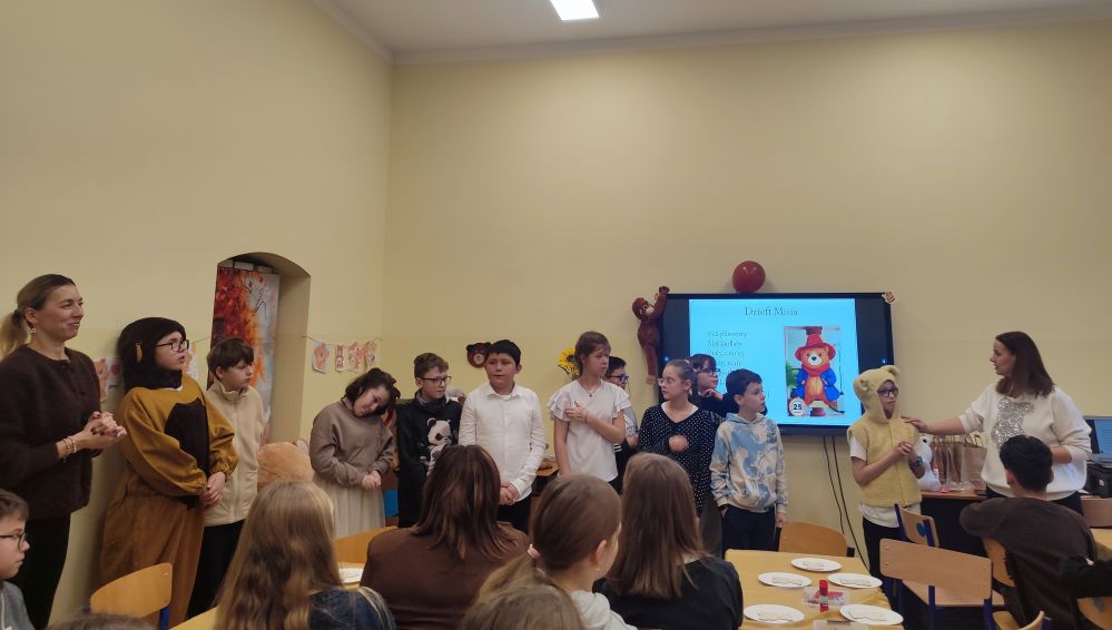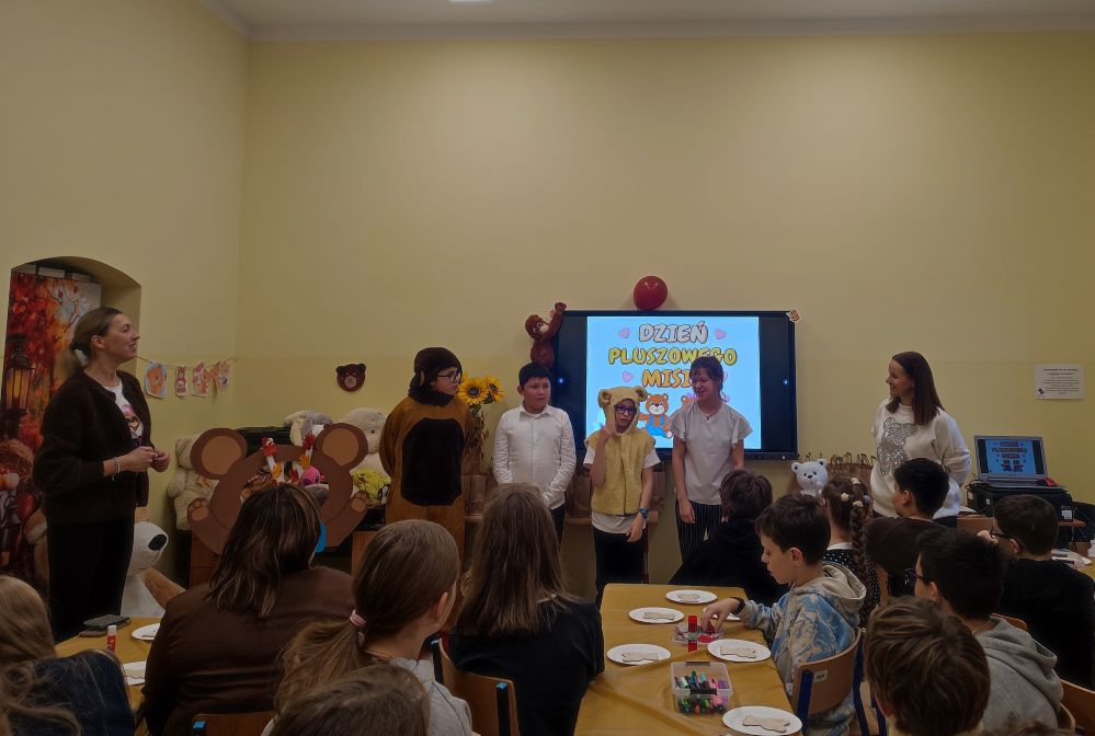 W dniu 25 listopada w murach Szkoły Podstawowej odbyły się wyjątkowe zajęcia integracyjne z okazji Dnia Pluszowego Misia. W wydarzeniu udział wzięli uczniowie klas 4a i 5b naszej szkoły oraz goście – klasy 5 ze Szkoły Podstawowej nr 18. Już od pierwszych chwil panowała radosna i przyjazna atmosfera sprzyjająca wspólnej zabawie i poznawaniu się.
