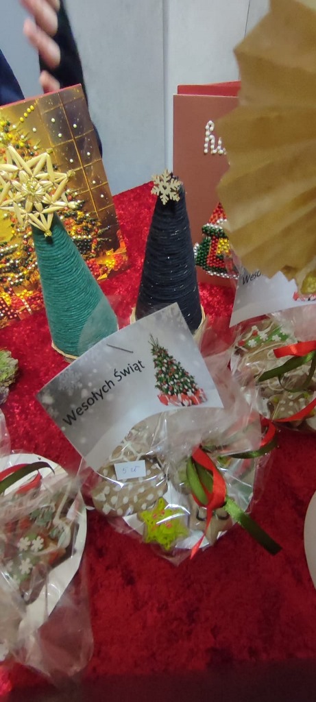 Podczas kiermaszu można było zakupić świąteczne ozdoby i dekoracje wykonane przez uczniów, a także domowe wypieki – ciasteczka oraz ciasta. Wszystkie przygotowane produkty powstały podczas lekcji plastyki, zajęć rozwijających kreatywność oraz zajęć opiekuńczo-wychowawczych.