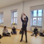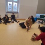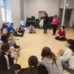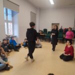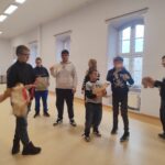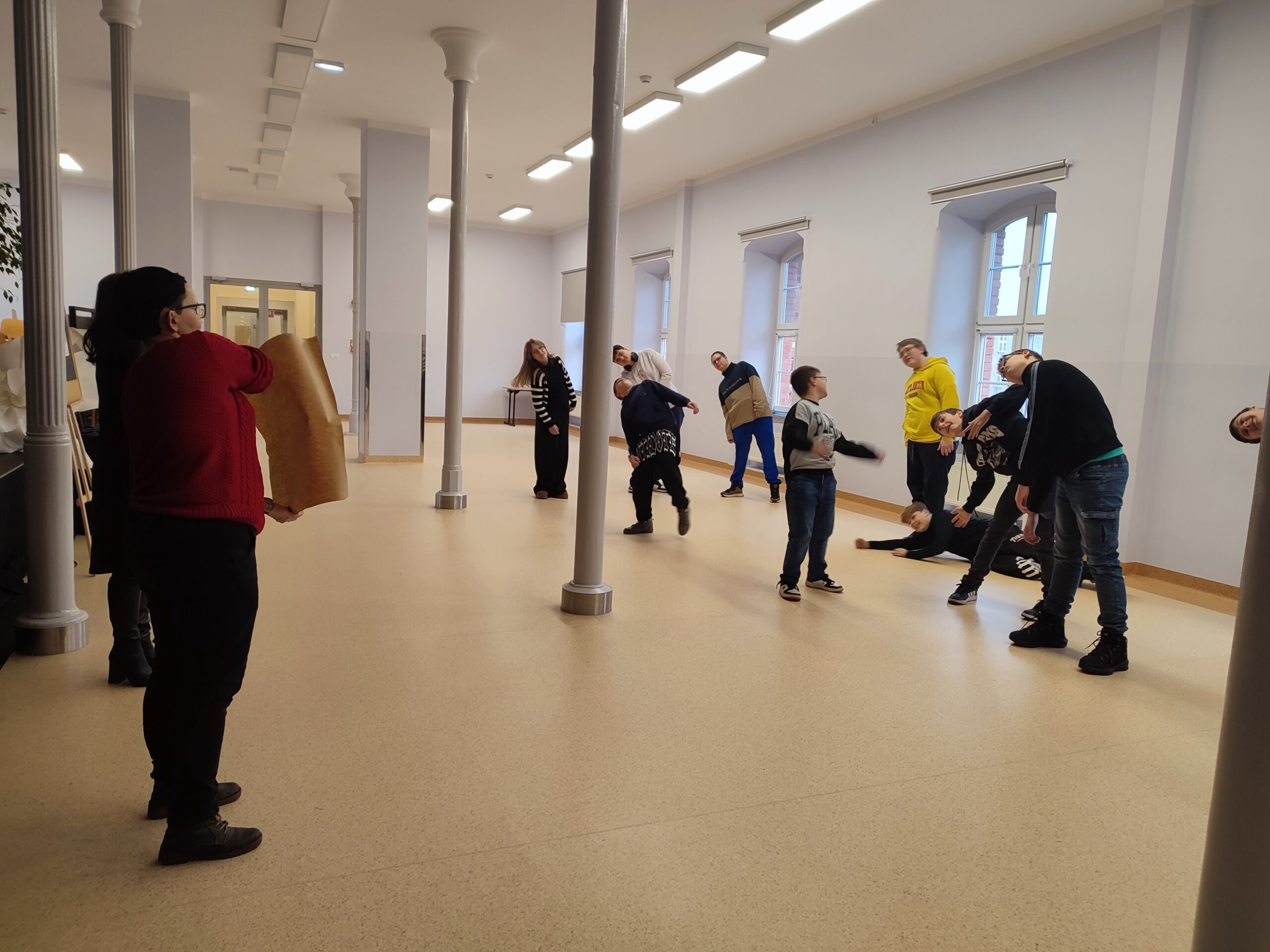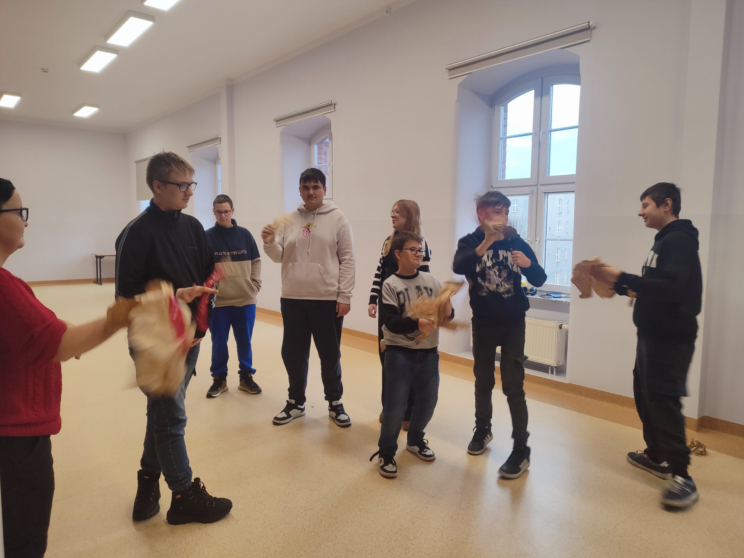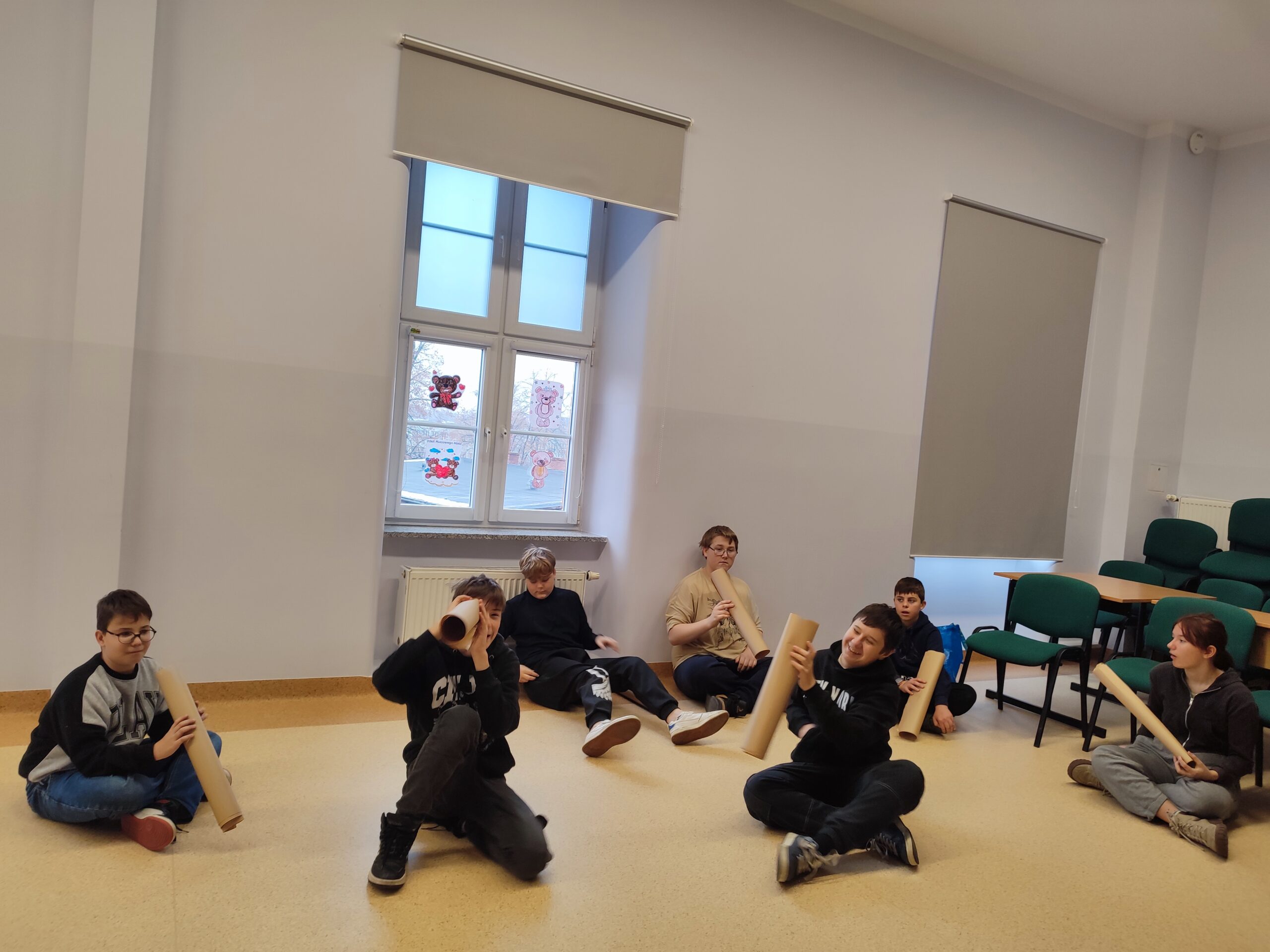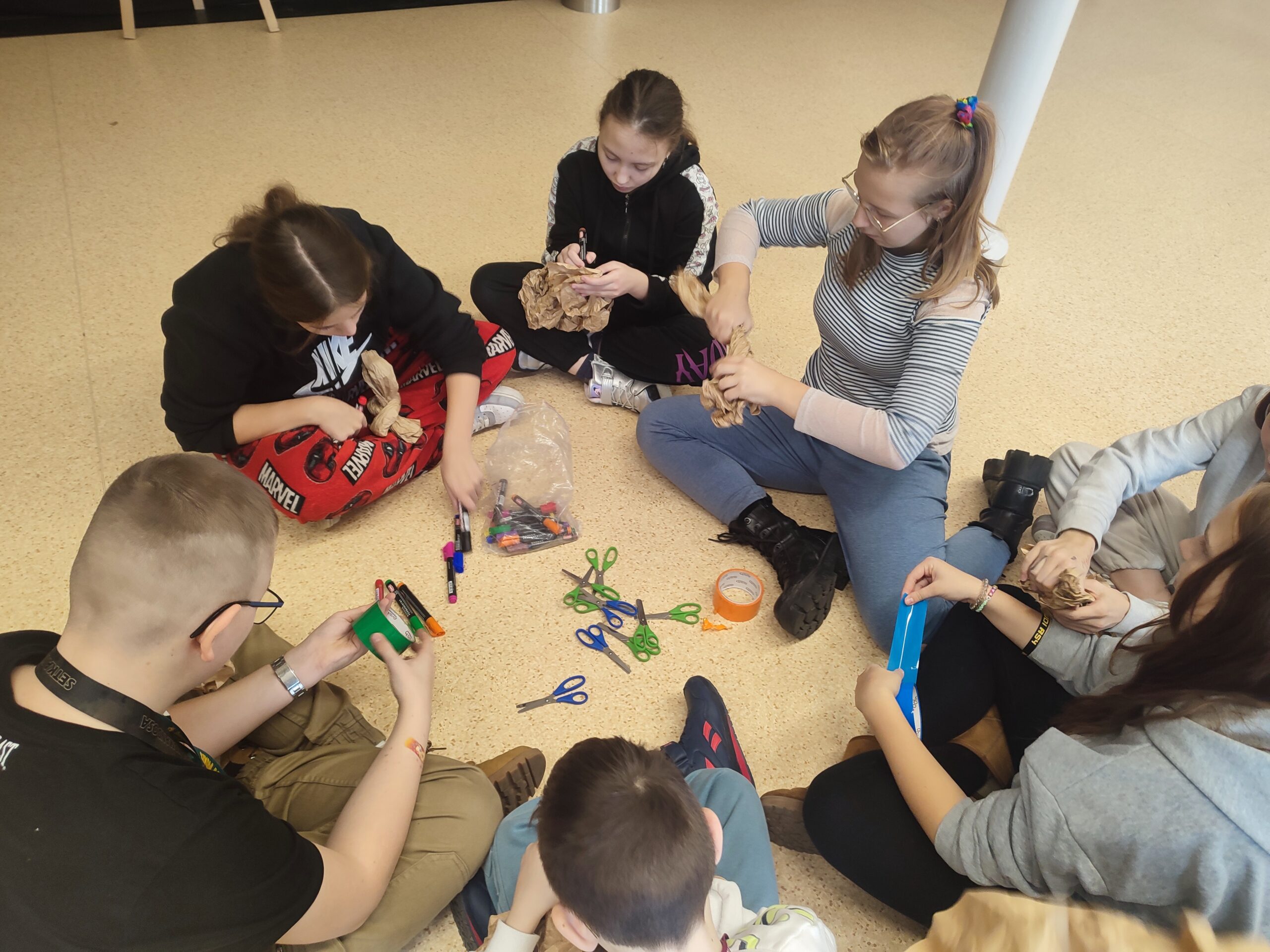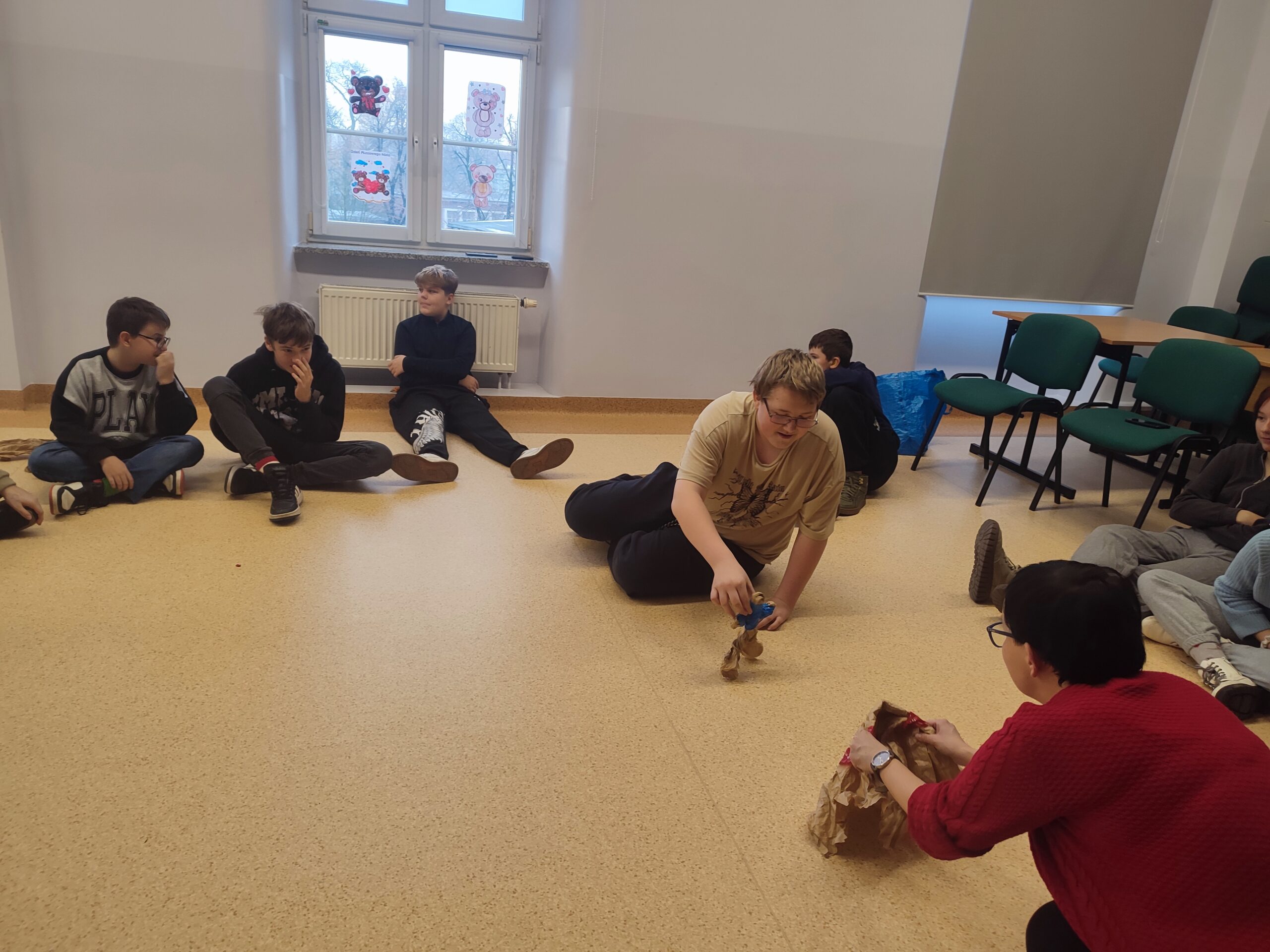Każdy uczestnik otrzymał arkusz szarego papieru, który mógł dowolnie zgniatać, formować i modelować. Zadanie polegało na stworzeniu własnej „lalki” – postaci, która dzięki kreatywnemu podejściu miała zyskać charakter i osobowość. Po uformowaniu kształtu dorysowywali swojej postaci oczy, nadawali jej imię oraz wymyślali krótką historię, w której ich bohater odgrywał główną rolę. Zwieńczeniem pracy była mini-prezentacja sceniczna. Uczniowie animowali swoje papierowe postacie, wykorzystując wyobraźnię, ruch i głos, tworząc krótkie, często zabawne i bardzo oryginalne etiudy.