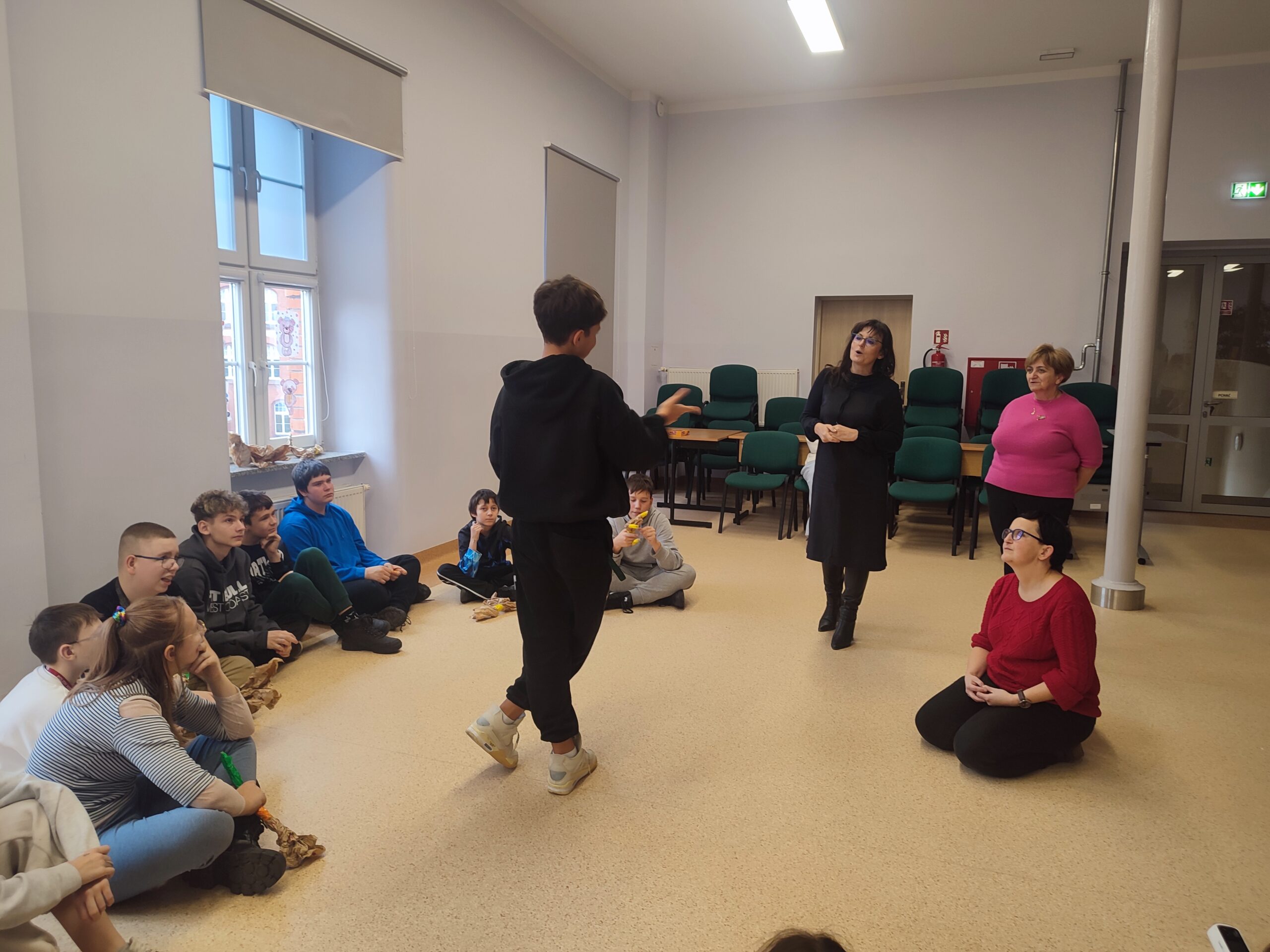 W dniu 3 grudnia w auli Szkoły Podstawowej odbyły się wyjątkowe warsztaty teatralne dla uczniów klas 6, 7 i 8, które poprowadziła pani Anna Nowak ze Śląskiego Teatru Lalki i Aktora Ateneum w Katowicach. Zajęcia miały na celu rozwijanie kreatywności, wyobraźni oraz wrażliwości artystycznej uczestników, a także przybliżenie specyfiki pracy aktora.