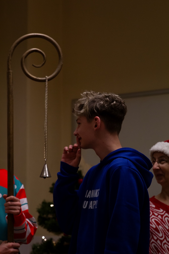 Mikołaj został przywitany z radością i uśmiechami, a atmosfera spotkania była pełna ciepła oraz świątecznego nastroju.