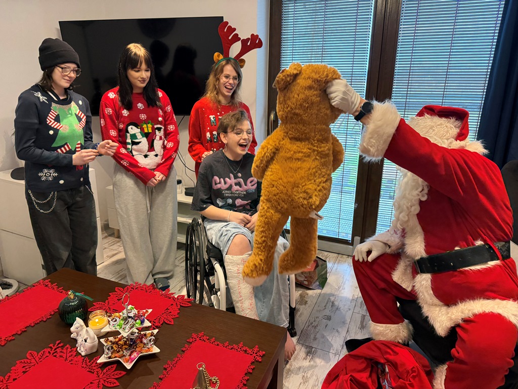 Podarunek został zakupiony przez Radę Młodzieży ze środków zebranych od uczniów szkół ponadpodstawowych, co dodatkowo podkreśliło solidarność i zaangażowanie społeczności szkolnej. Spotkanie przebiegło w serdecznej atmosferze, a obecność Mikołaja i Pani Mikołajowej wywołała u uczennicy wiele radości i wzruszenia.