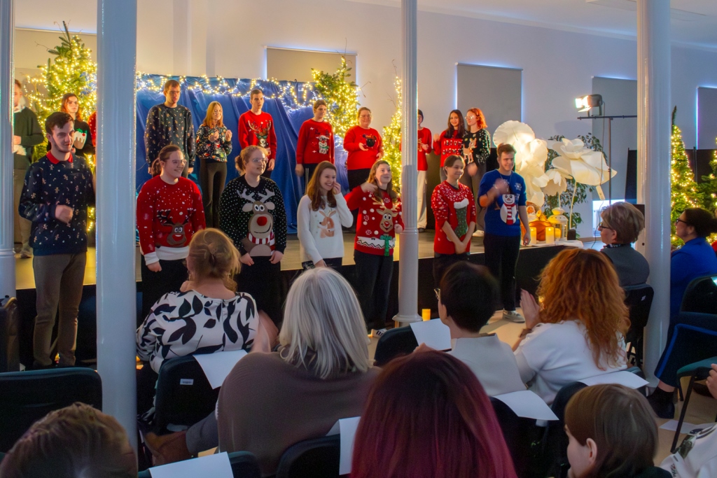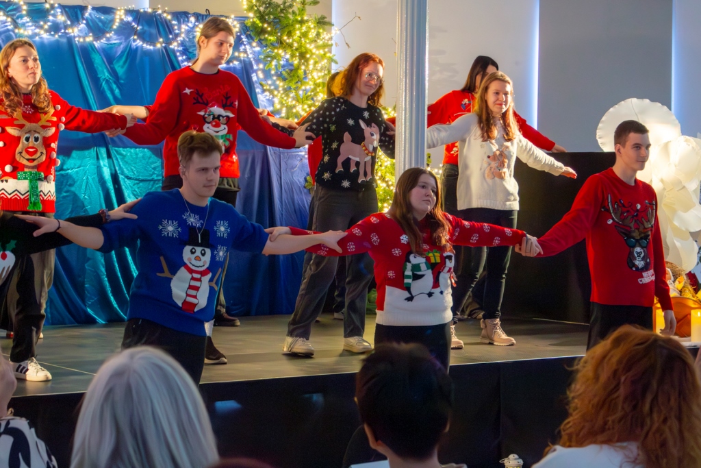 17.12.2025r. – ten wyjątkowy dzień scena ożyła dzięki niezwykłemu występowi świątecznemu „Światło w nas”. Młodzież zaprezentowała nie tylko przepiękny taniec świąteczny, ale także własne, autorskie piosenki migane, które poruszały serca każdego widza.
