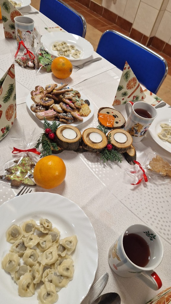 Wspólna Wigilia Ośrodkowa stała się ważnym i wartościowym doświadczeniem integrującym całą społeczność Ośrodka. Spotkanie przebiegało w atmosferze życzliwości, wzajemnego szacunku i świątecznego skupienia. Był to czas wspólnego przeżywania tradycji bożonarodzeniowych, refleksji oraz budowania więzi, które na co dzień tworzą fundament życia ośrodkowego i wprowadzały w klimat nadchodzących Świąt Bożego Narodzenia.