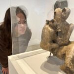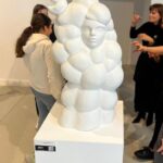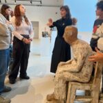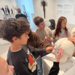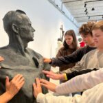 Już od pierwszych chwil uczestnicy zostali wciągnięci w niezwykłą atmosferę miejsca, w którym sztukę można było nie tylko oglądać, ale przede wszystkim – dotykać, słuchać, wąchać. Pani Jolanta zaprosiła młodzież do odkrywania świata rzeźby wszystkimi zmysłami. W przestrzeni wystawy czekały na nas różnorodne materiały: kamień, metal, ceramika i drewno – każdy o innym ciężarze, fakturze, zapachu i dźwięku. Dzieci z ogromnym zaciekawieniem podchodziły do eksponatów, mogły je dotknąć, poczuć pod palcami ich strukturę i temperaturę, posłuchać odgłosów, jakie wydają, kiedy się je porusza. Dla naszych uczniów – szczególnie tych z niepełnosprawnościami słuchu – było to doświadczenie wyjątkowe, pełne nowych bodźców i emocji. W warsztatach zapewniona była pełna dostępność komunikacyjna – obecny był tłumacz języka migowego PJM, dzięki czemu każdy mógł w pełni uczestniczyć w rozmowie i wymianie wrażeń.
