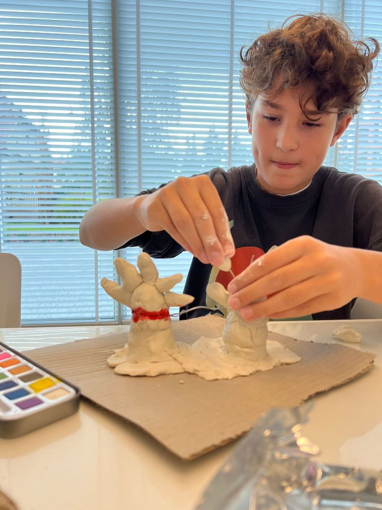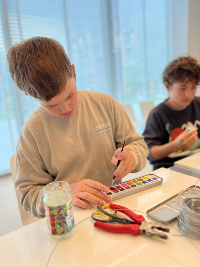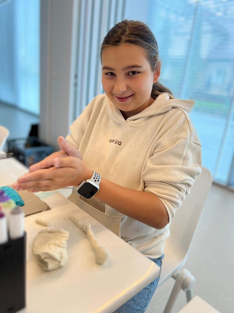 Druga część spotkania – warsztatowa – okazała się prawdziwą eksplozją kreatywności. Dzieci, inspirowane doświadczeniami z wystawy, tworzyły własne małe „sejfy” – formy rzeźbiarskie z różnych materiałów, w których mogły „ukryć” swoje myśli, wspomnienia i uczucia. Pojawiły się prace z gliny, drewna, papieru i drobnych przedmiotów codziennego użytku. Każda praca była inna, niepowtarzalna i wypełniona emocjami. Uczestnicy z entuzjazmem dzielili się swoimi pomysłami, a w pracowni panowała atmosfera skupienia, ale też radości i spontanicznego śmiechu.