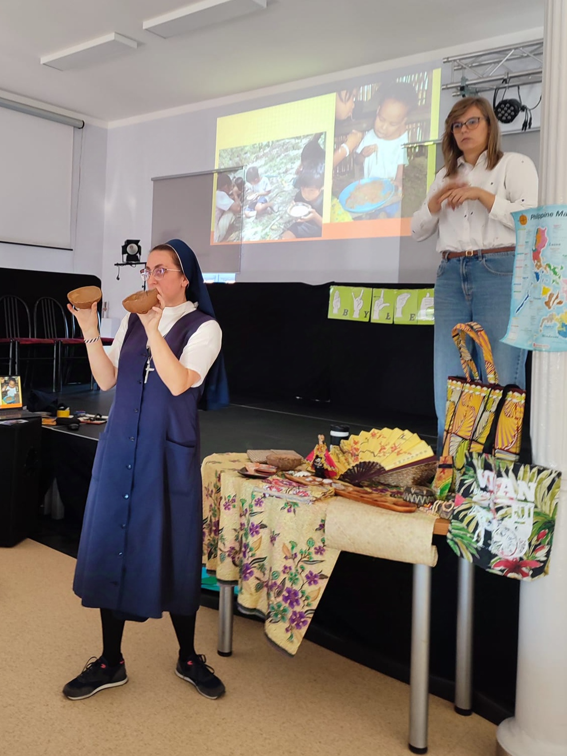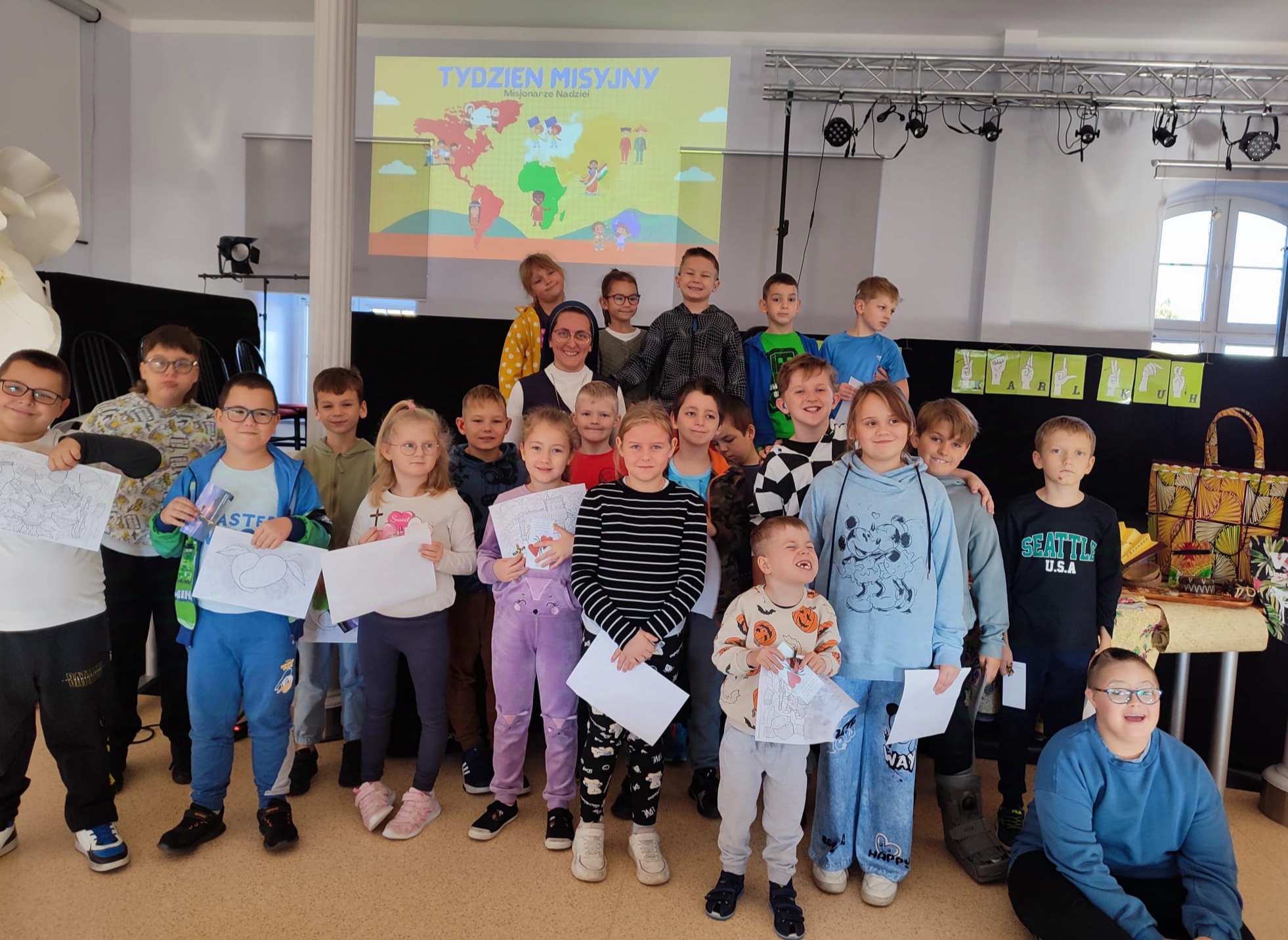 W czwartek 23.10.2025r. ramach Tygodnia Misyjnego uczniowie klas 1–3 oraz 4–6 mieli niezwykłą okazję uczestniczyć w spotkaniu z s. Barbarą, katechetką z naszego Ośrodka, która przez kilka lat pracowała na Filipinach. Dzięki jej opowieściom przenieśliśmy się na drugi koniec świata – do kraju pełnego słońca, kolorów i serdecznych ludzi.