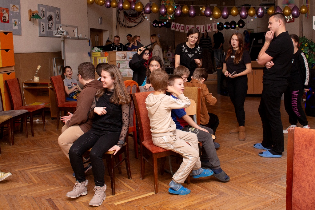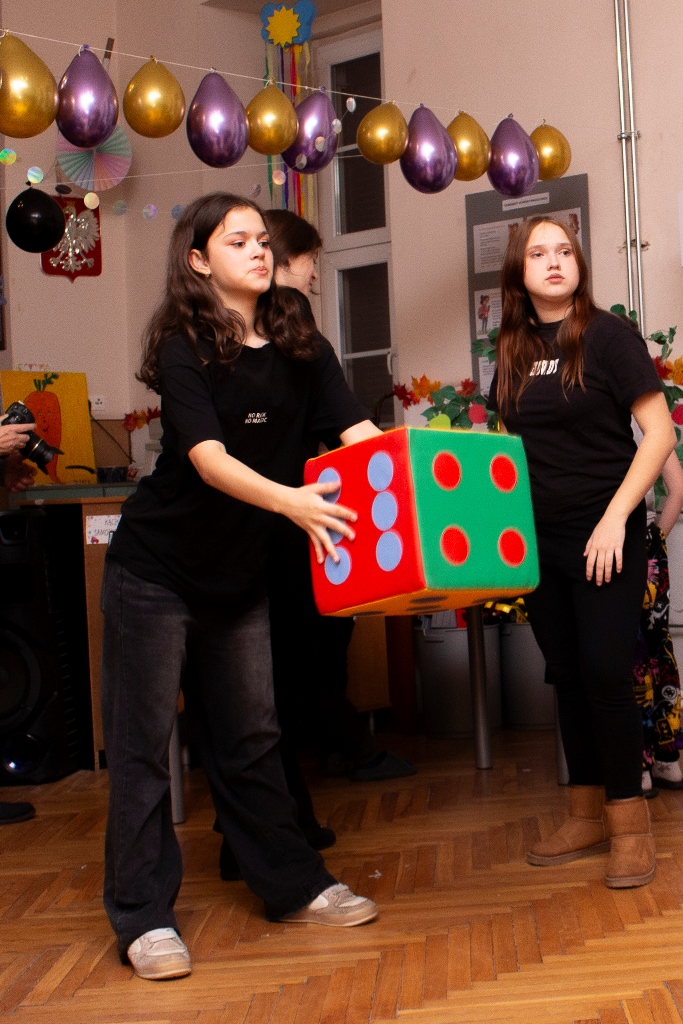 Po części wróżbiarskiej rozpoczęły się gry i zabawy integracyjne, pełne śmiechu i pozytywnej energii. Wieczór zakończyła dyskoteka, podczas której wszyscy mogli wspólnie potańczyć i spędzić czas w radosnej atmosferze.