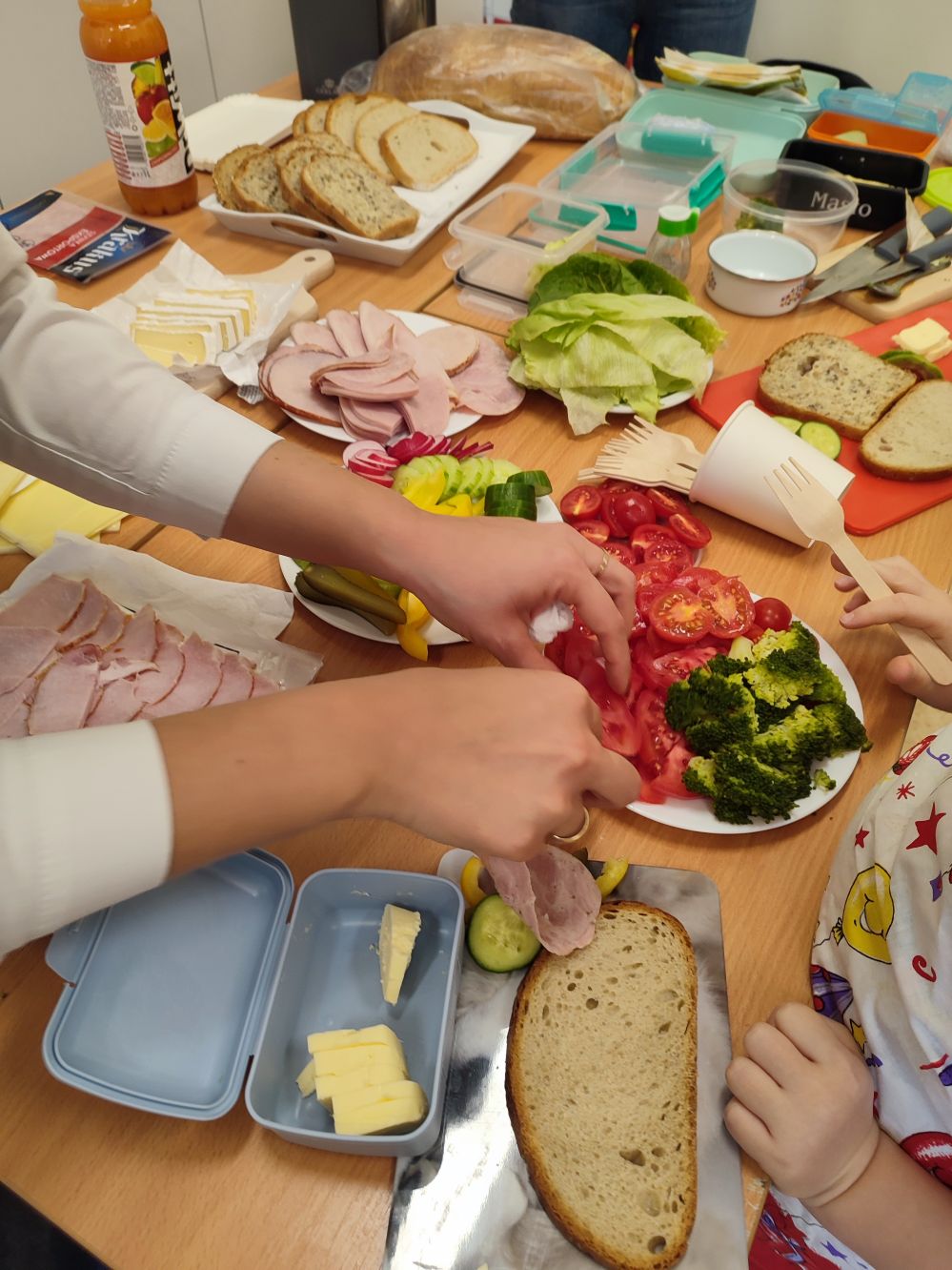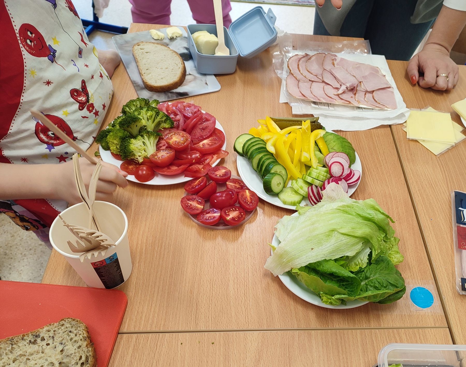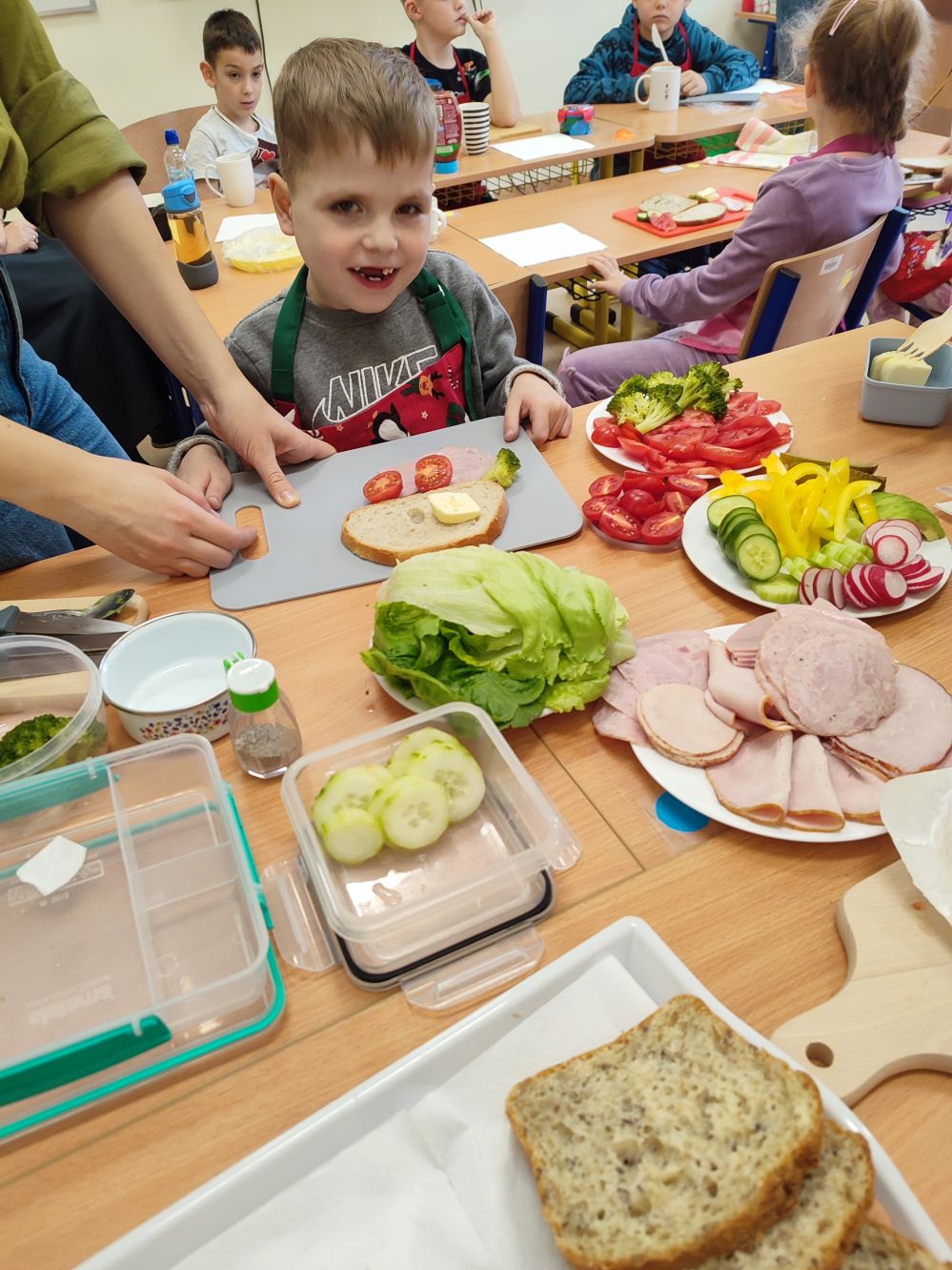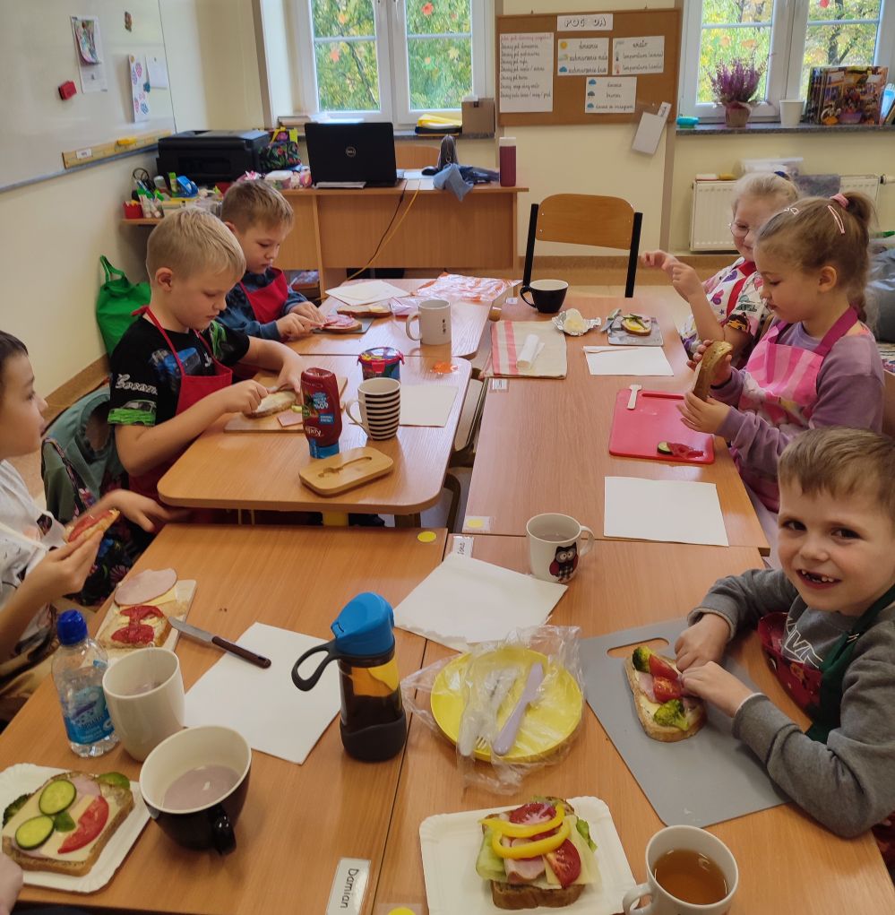Zajęcia miały charakter integracyjny – dzieci współpracowały, dzieliły się pomysłami i odkrywały, że wspólne przygotowywanie posiłków to świetna zabawa. Wcześniej uczniowie uczestniczyli w pogadance o zdrowych i wartościowych posiłkach, dzięki czemu wiedzieli, jak skomponować kanapkę, by była nie tylko smaczna, ale też pełna witamin i energii.